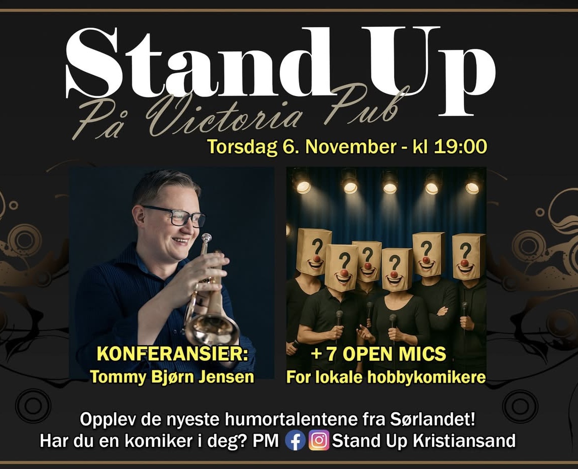 Stand Up Kristiansand er klare for nytt show hos Victoria Pub torsdag kl 19.